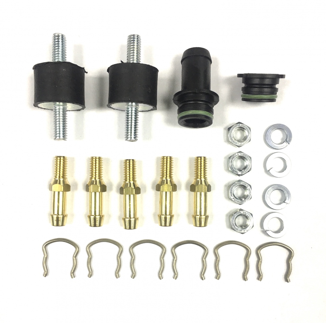 Комплект включает в себя все необходимые аксессуары для полимерных форсунок АЕВ на 4 цилиндра со сменными полимерными насадками Ø 12мм